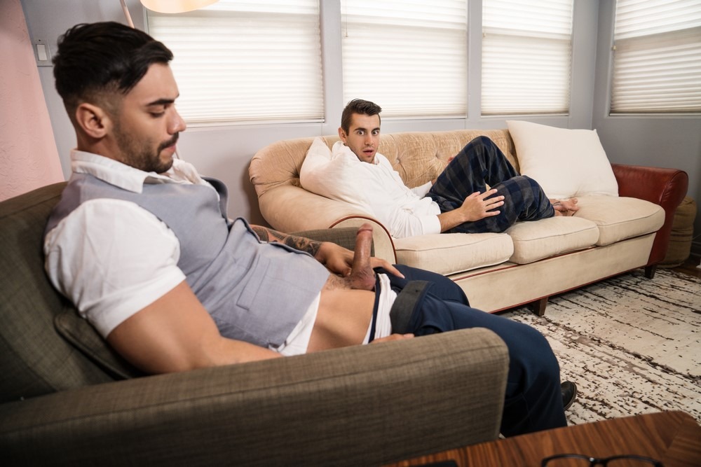 Dante Colle has solicited the services of therapist Arad Winwin, hoping that the muscular man can help him make sense of the troubling dreams he’s been having. However, when Arad sets his eyes on his handsome and sensitive new patient, he can’t help himself. Dante describes his sexually charged dreams, wondering over their significance while Arad happily soaks in the horny details while sneakily stroking his cock. When Dante realizes what the horny shrink is up to he decides its time to make his dreams a reality, letting the chiseled stud bareback his hole all over the therapist’s office until Dante’s hungry hole is dripping with Arad’s huge load.