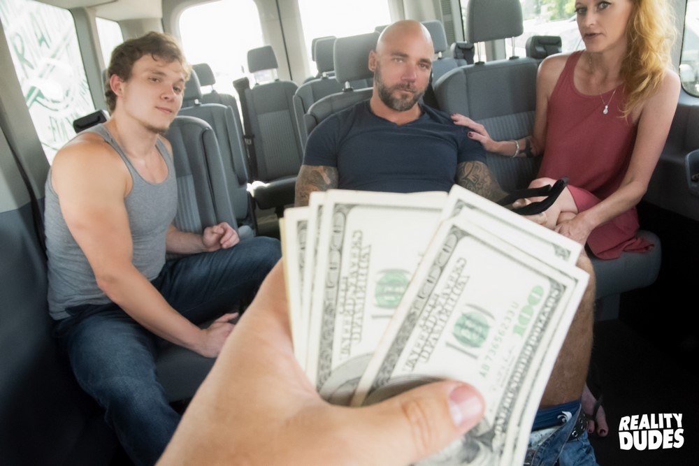 Today I’ve got Jenn and Luke in the van to pick up straight guy Jason. Jason is a huge, muscular, tattooed silver fox, and he’s not happy about it when he pulls off the blindfold and sees it’s a blond twink sucking his dick!
