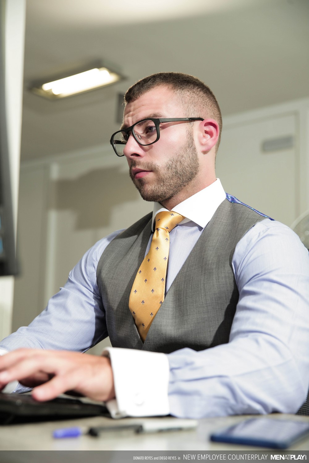 Hot stud Donato Reyes is at the office; he’s keeping an eye on his new employee, Diego Reyes, who is hard at work on a project for the boss. Little does Donato know, Diego has also been keeping an eye on him. After catching Diego recording him with his phone, Donato proposes a way to make an even better video – together. It isn’t long before one of these dapper gents has an ass full of cock. Professional development at its finest.