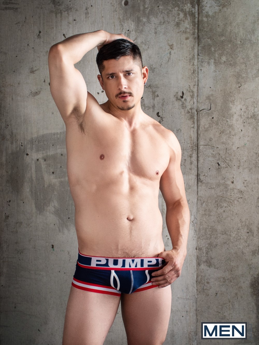 Jack Kross and Rocky Vallarta are two muscular and athletic studs who can’t wait to get their cocks inside of each other. The two sexy dark-haired men kiss passionately before Rocky slides down to wrap his lips around Jack’s thick cock. Rocky tongues and teases Jack then lets the big-dicked dude return the favor. Both their cocks wet and ready, Jack bends Rocky Vallarta over and shoves his dick deep in his partner’s hole, making him moan as he takes every inch of it. Jack drives himself into Rocky over and over until the sexy man blasts his cum all over Jack’s abs.