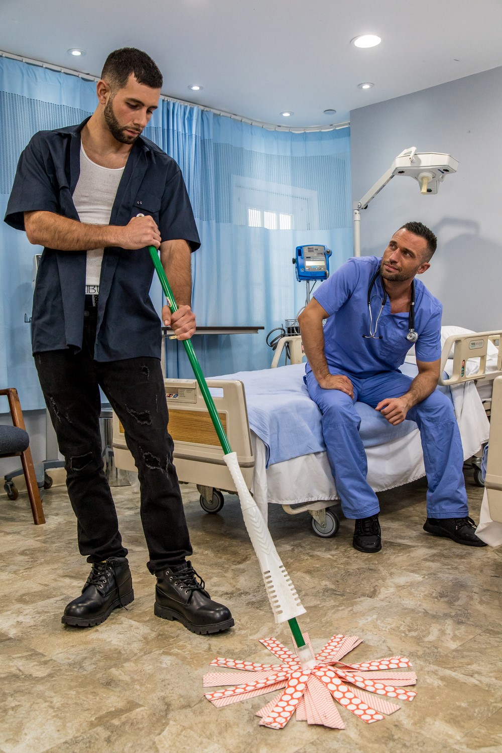 That is until the sexy janitor Argos Santini shows up. Both these hardworking men start to work really hard on each other’s bodies, taking advantage of the quiet hospital. In the examination room, they probe every inch of each other and soon Argos is ramming his 9 inch blue collar cock up Colby’s willing hole.