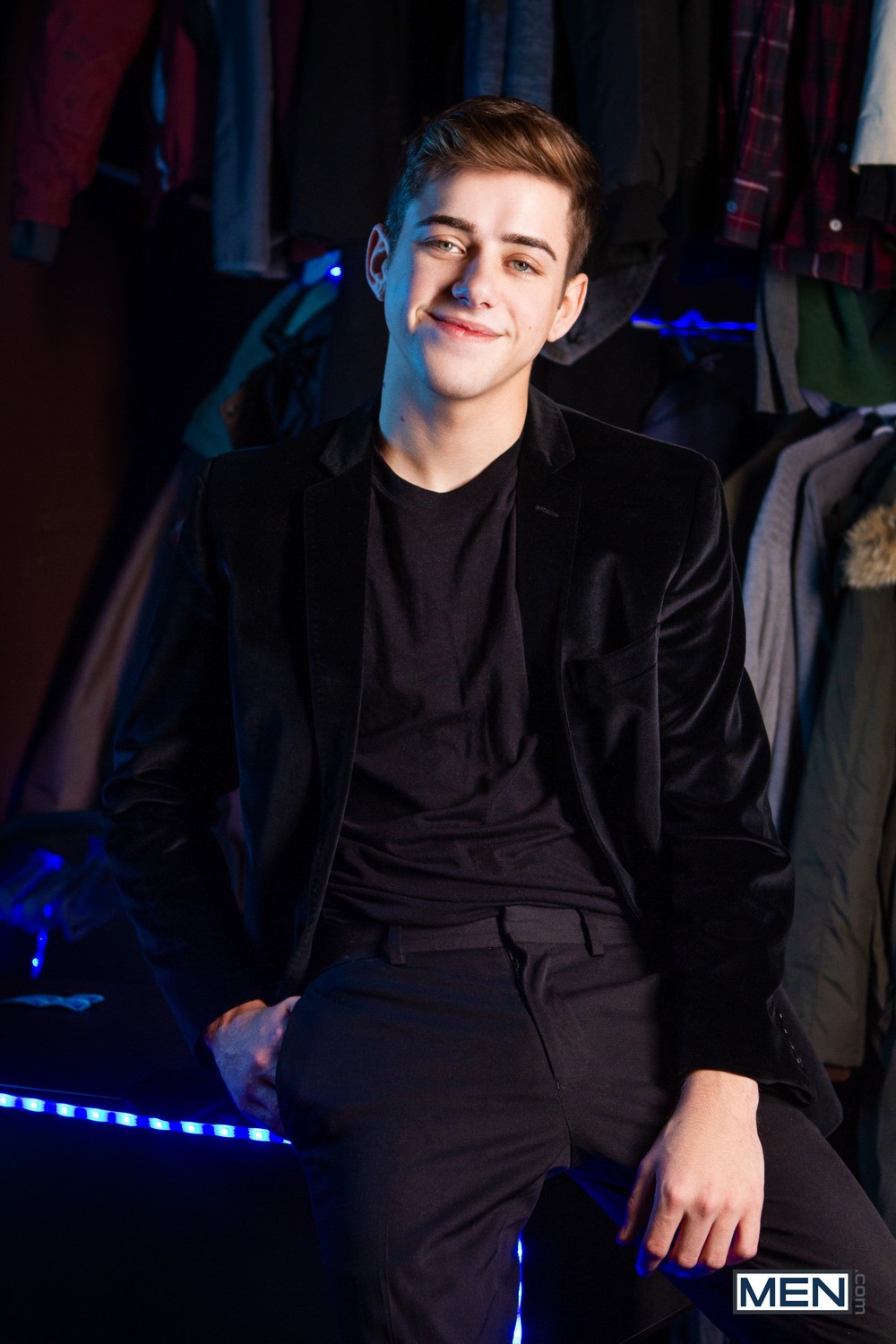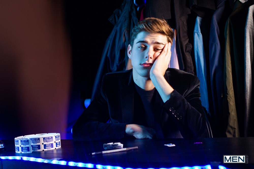 Gay porn mega site Men.com has paired up two of their exclusive models; Joey Mills and William Seed. The hung Canadian top fucks Joey’s tight twink ass in “Cock Check“. Coat check guy Joey Mills is bored and the coast is clear, so he gets out his cock and starts stroking it.