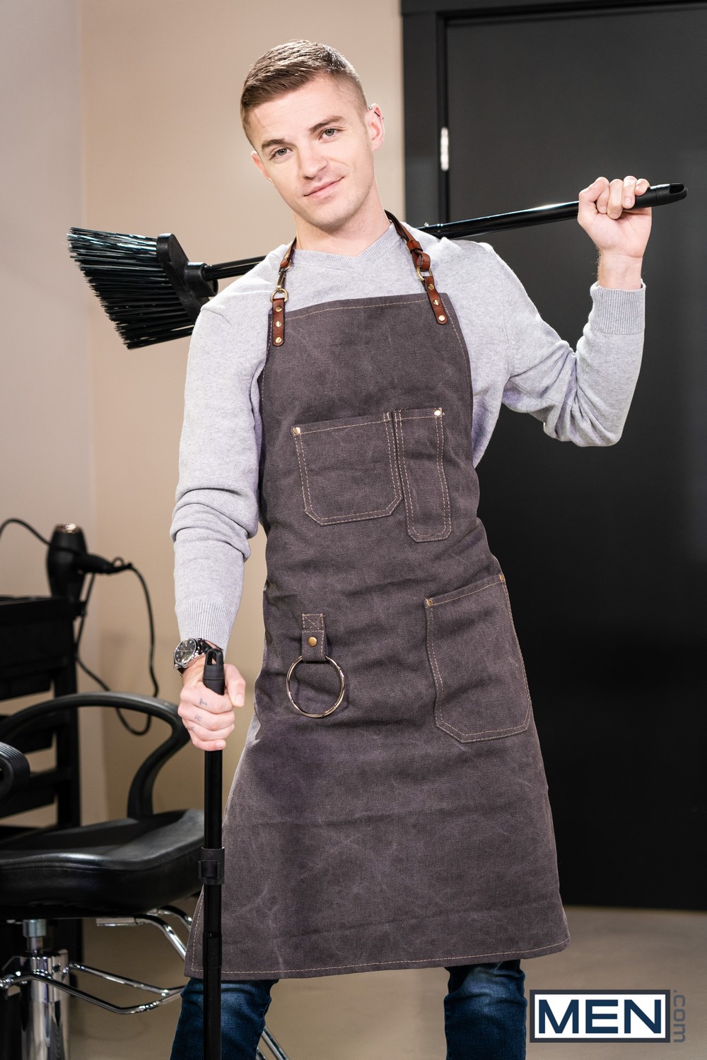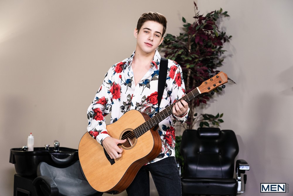 “The Ultimate Pretty Boy” is a bareback Men.com video starring Tom Bentley and Joey Mills. When pop sensation Joey Mills races into Tom Bentley‘s barbershop for a trim, the famous twink won’t even hold still, let alone put down his guitar, so Tom shows Joey that at least in his shop, he’s in charge.