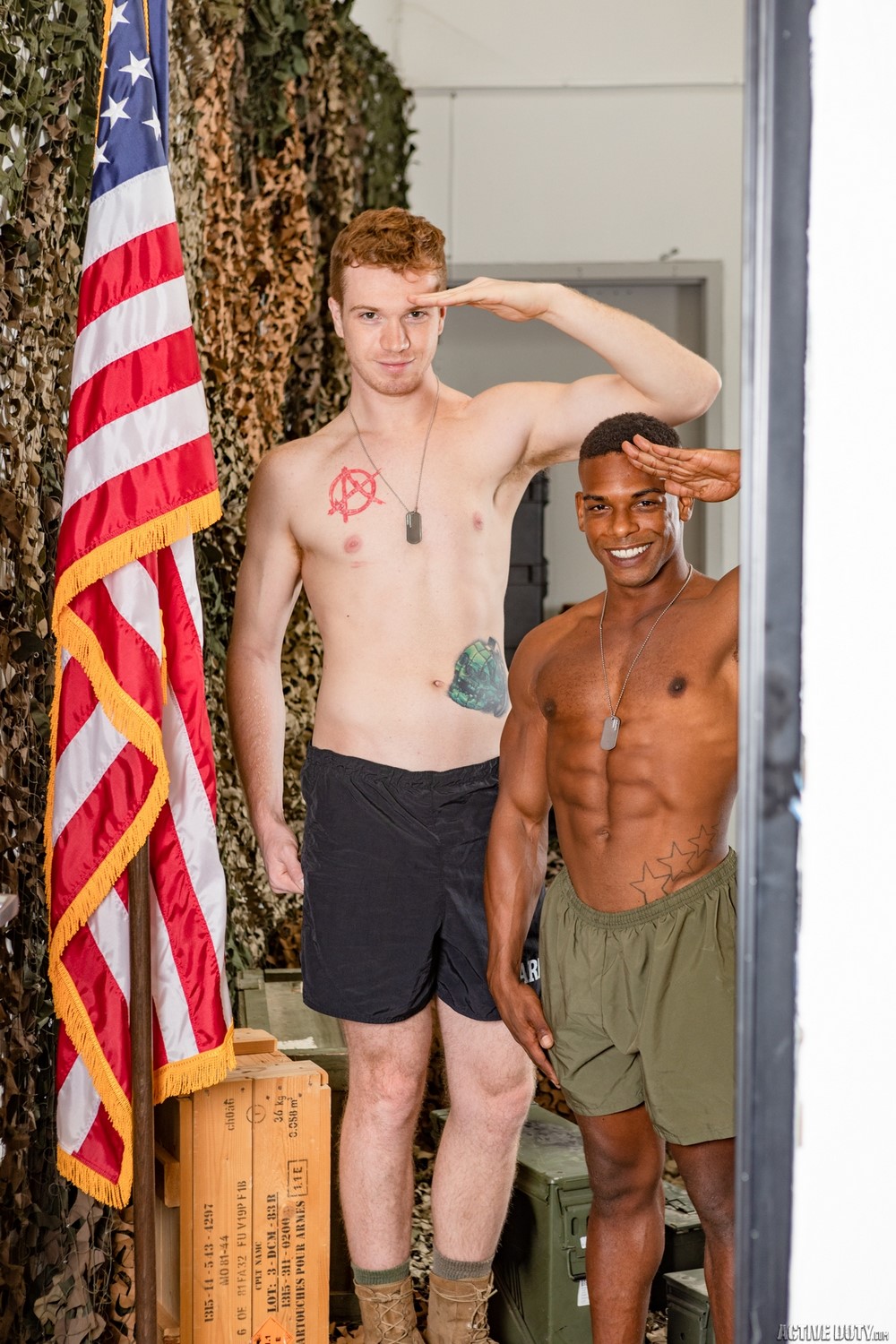 Active Duty: Adrian Hart and Dacotah Red fuck each other in “Private Pounding”