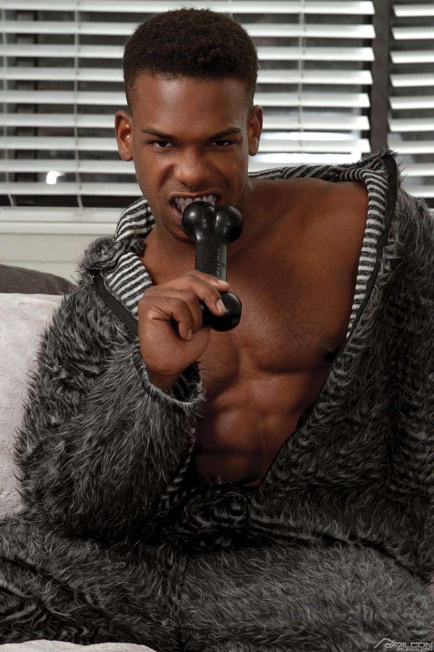 The obedient Adrian has to stop himself from howling as Reign slaps his ass and passionately buries his bone in Adrian’s tight backyard. A few more thrusts from the top’s hot cock and the horny pup is busting all over his abs with Reign pulling out to spray him down only seconds later.