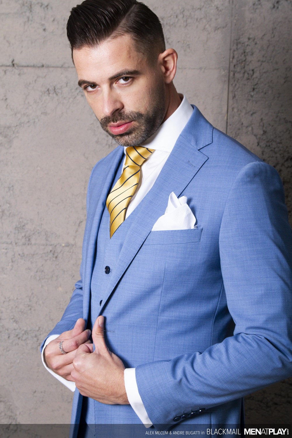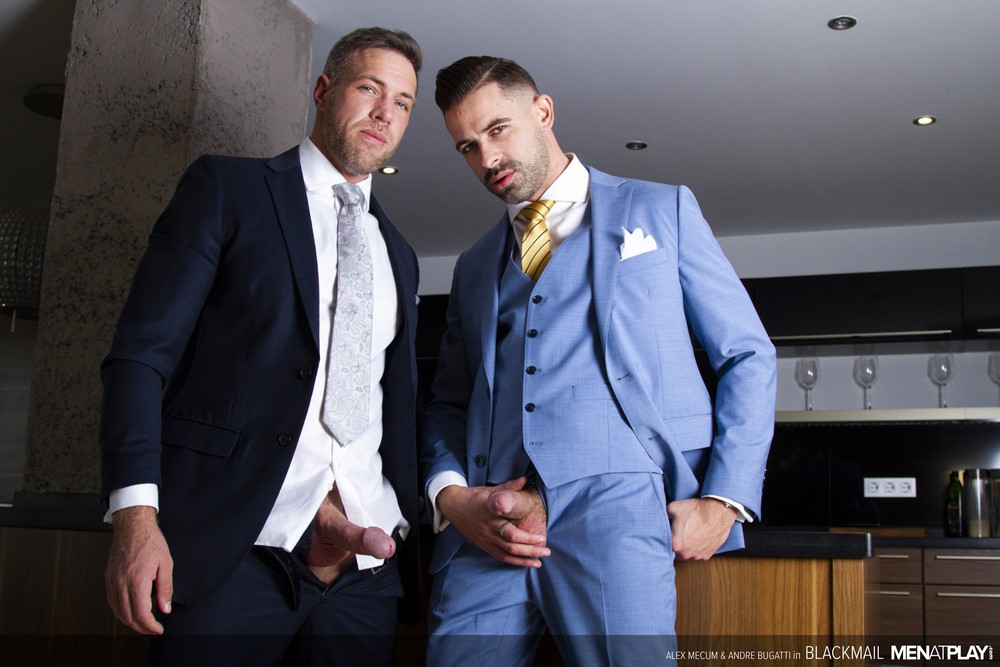 Spanish newcomer Andre Bugatti debuts at Men At Play and fucks Alex Mecum in “Blackmail“. Alex is home getting ready to go to work at Parliament when his doorbell rings. When he opens the door, Andre Bugatti is there – looking quite arrogant and suspicious.