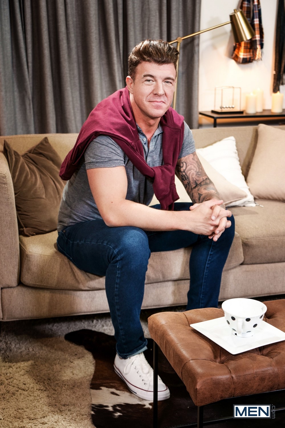 The guys fuck in spoon on the couch, then JJ pounds Andy doggy-style till the bottom cums and gives him a facial. Andy offers his neighbor a turn on the fucking machine, but JJ gets a sudden sinking feeling…