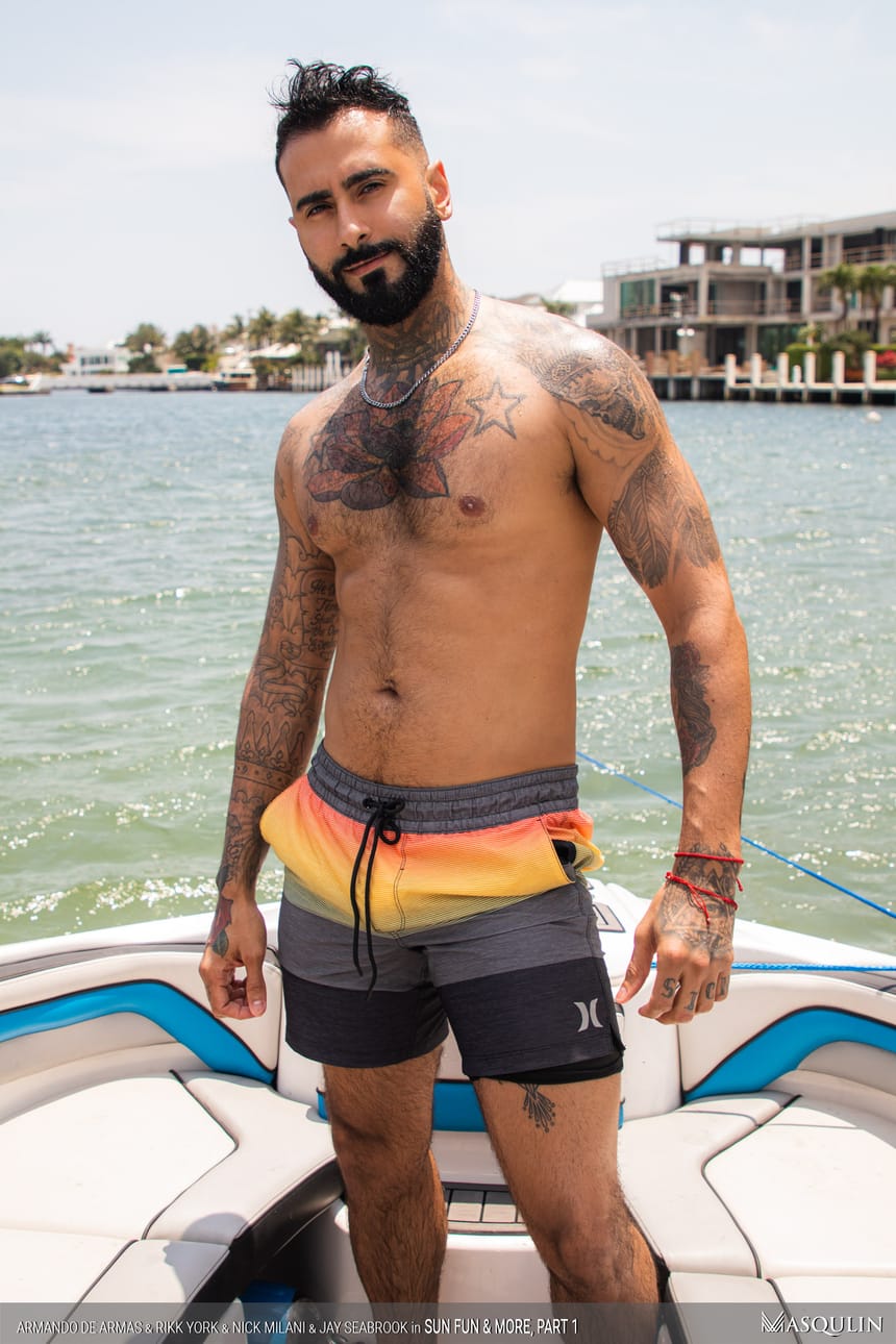 This Masqulin scene – starring Armando De Armas, Rikk York, Nick Milani and Jay Seabrook – is the first part of “Sun, Fun and More“.