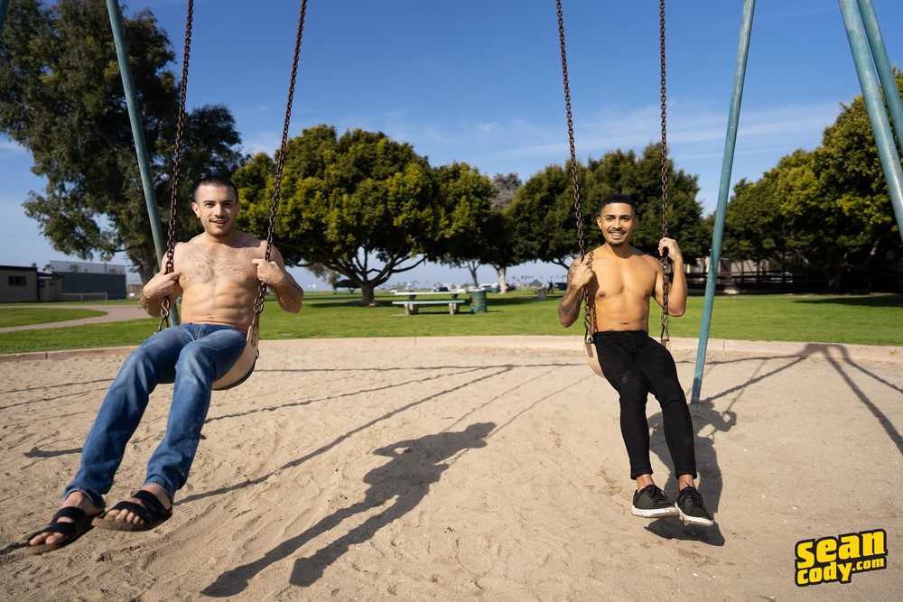 The guys are letting their playful sides out at the park as they hop on the swingset, then flirt with each other under a shady tree, their hands wandering across each other’s muscular chests. Back at the Sean Cody studio it’s time for a different kind of play! Since these guys know the importance of taking turns, it’s going to be a hot flip-fuck.