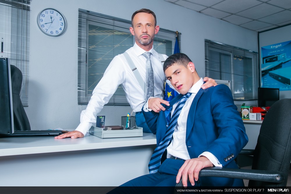 This new Men At Play release – starring Bastian Karim and Vadim Romanov – is called “Suspension Or Play?“. The young bottom boy gets fucked by the hung Russian fucker!