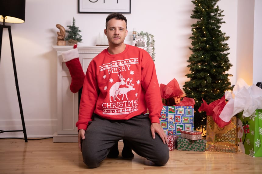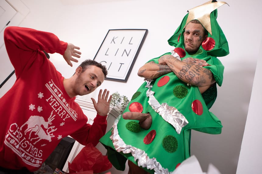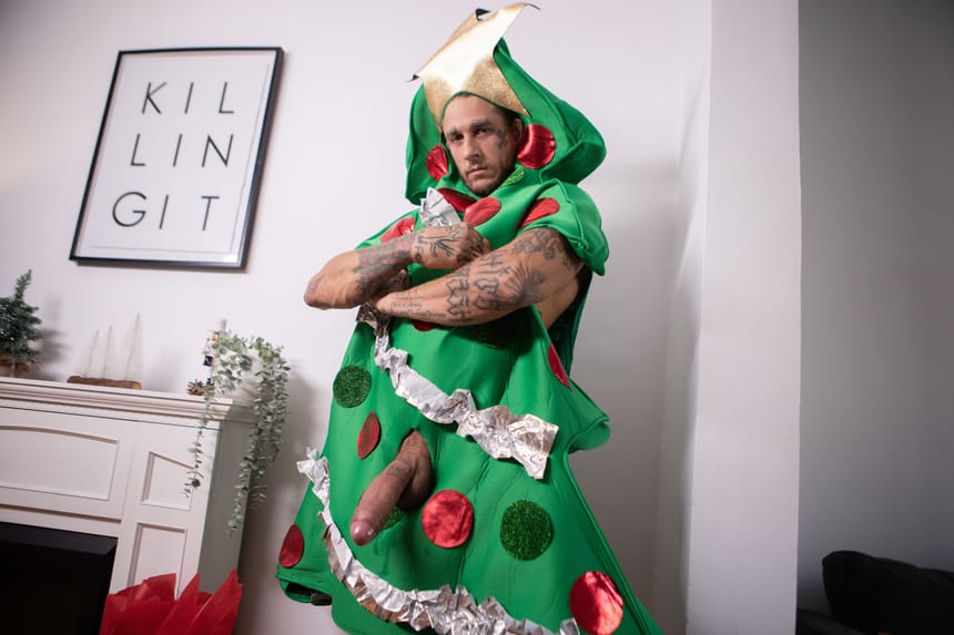 His wish is granted when his Christmas tree transforms into Bo Sinn, boasting a very special ornament for Nate to play with! Nate sucks that huge cock, deep-throating it and sucking the top’s balls.