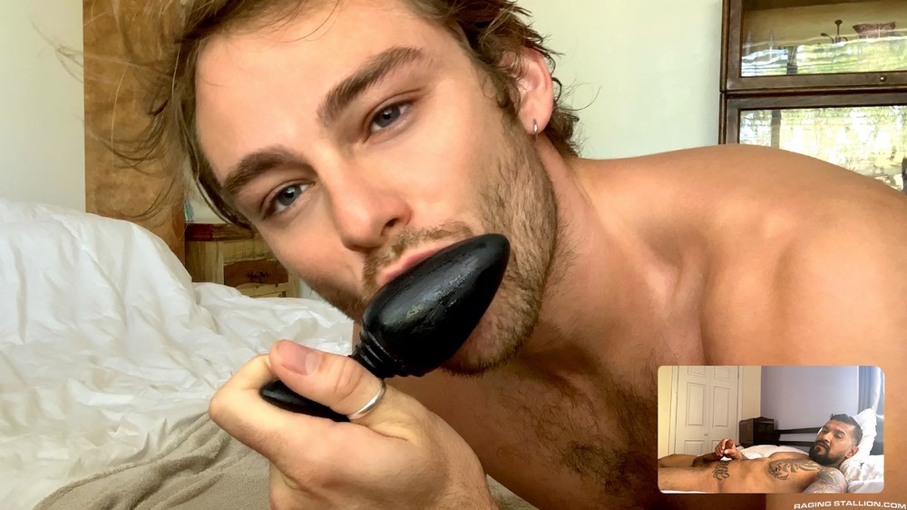 This Raging Stallion release – called “The Package” – connects porn stars Boomer Banks and Max Adonis through a remote video chat.