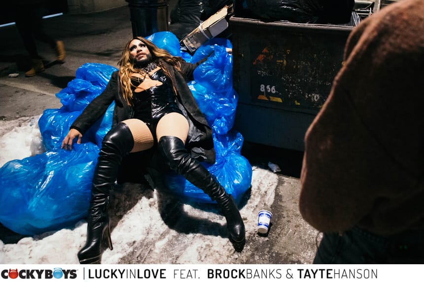 Lucky (Tayte Hanson) gets a big surprise when he meets Justin (Brock Banks) in drag! Alas, Justin has locked himself out of his own place so Lucky invites him home and on the way finds they both share bad luck in life.