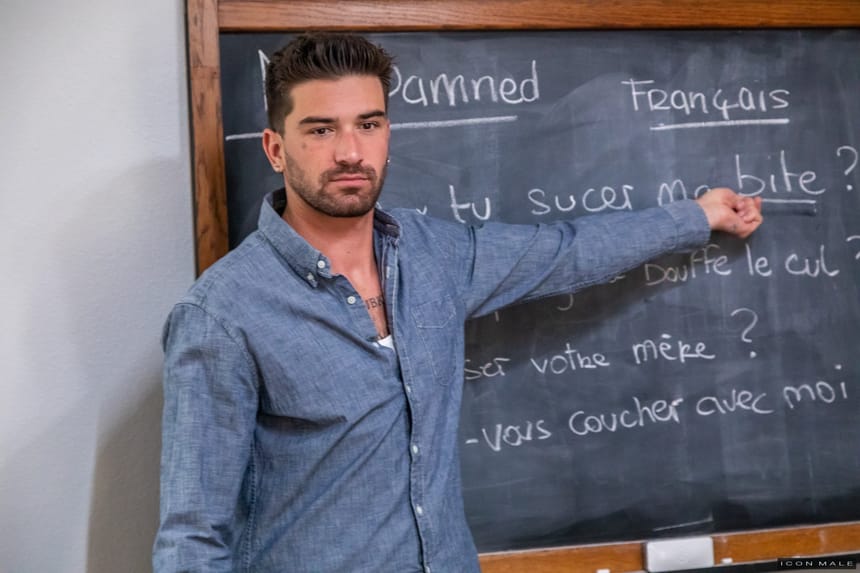 Icon Male: Chris Damned, Jack Hunter & Andy Taylor fuck in “My Hot Teacher” (scene 2)