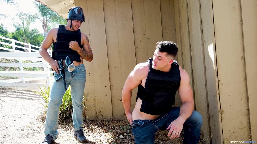 During an intense day of paintball, Collin Simpson and his buddy, Carter Woods get really horny. Both of the guys can no longer control themselves. They suck and fuck each other until one of them blows a big and creamy load!