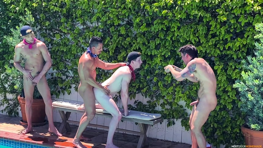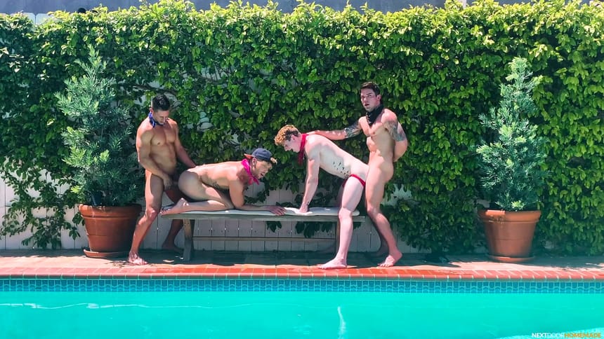 What better way to cool down on a hot summer day than to fuck around with your friends poolside? Dakota Payne, Jax Thirio, Devyn Pauly, and Max Lorde get wet in this hot homemade fuckfest. There’s plenty of oral action before Devyn and Max get their bare holes stuffed.