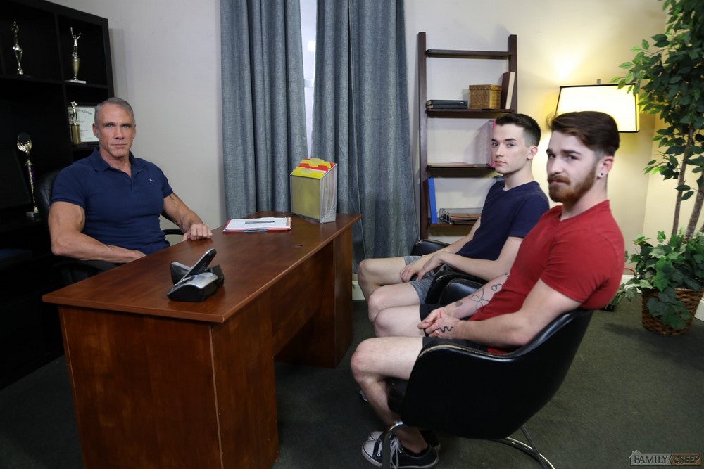 This is the first part of the Pride Studios series “The Principal’s Office“. In this scene, principal Dallas Steele raw-fucks his own stepson Alex Meyer.