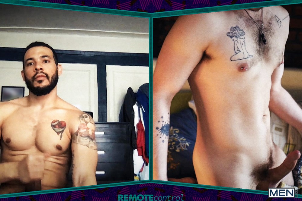 In the fourth scene from the Men.com series “Remote Control“, Aaron Oaks and Elijah Wilde jerk off while they video chat. Aaron is a newcomer, while Elijah has previously worked with Noir Male and Raw Fuck Club.