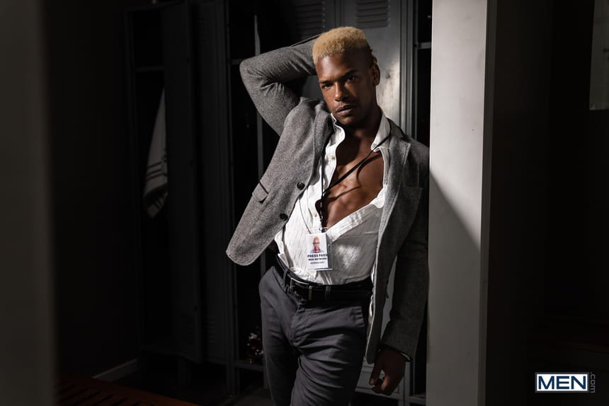 The fourth part of the Men.com mini-series “Locker Room Diaries” brings Felix Fox and Adrian Hart together… again! Reporter Adrian gets a bit distracted during his post-game interview with winning quarterback Felix.