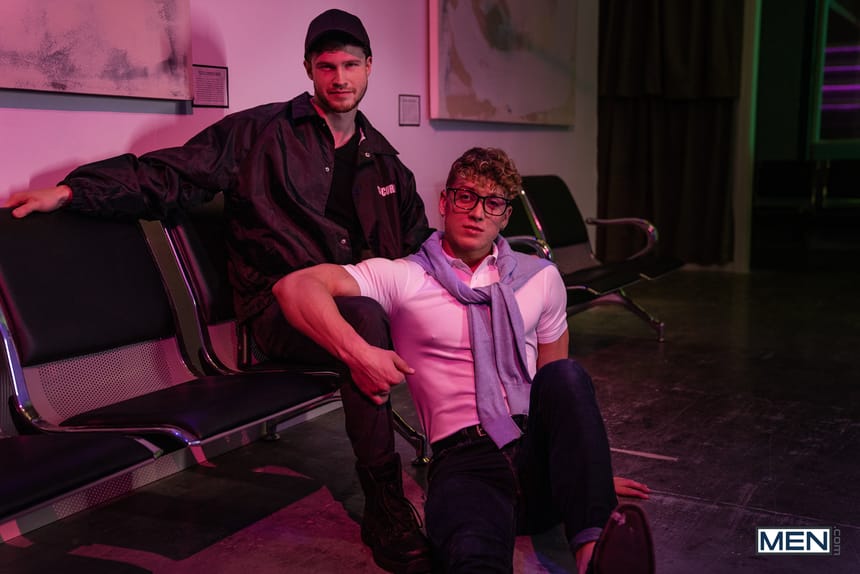 Finn Harding and Felix Fox meet again in this hot Men.com release, called “Immersive Top“. When Felix and his friends show up at the hottest gallery in town for an exhibit, first they have to get pat-downs from security officer Harding!