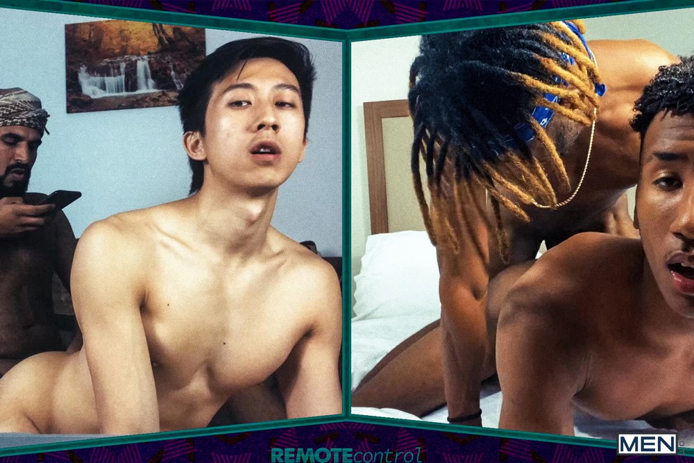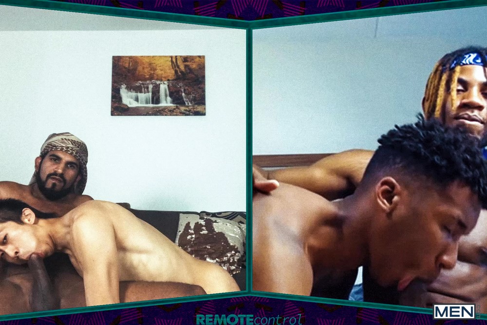 The MEN Network has released the 8th episode of their quarantine series “Remote Control“. In this latest release, we’re seeing dominant Arab top Jafar Azeezi fucking his Asian boyfriend Tyler Wu. American couple Pablo Strokess and Jaiden Dinero fuck on the other half of the screen.