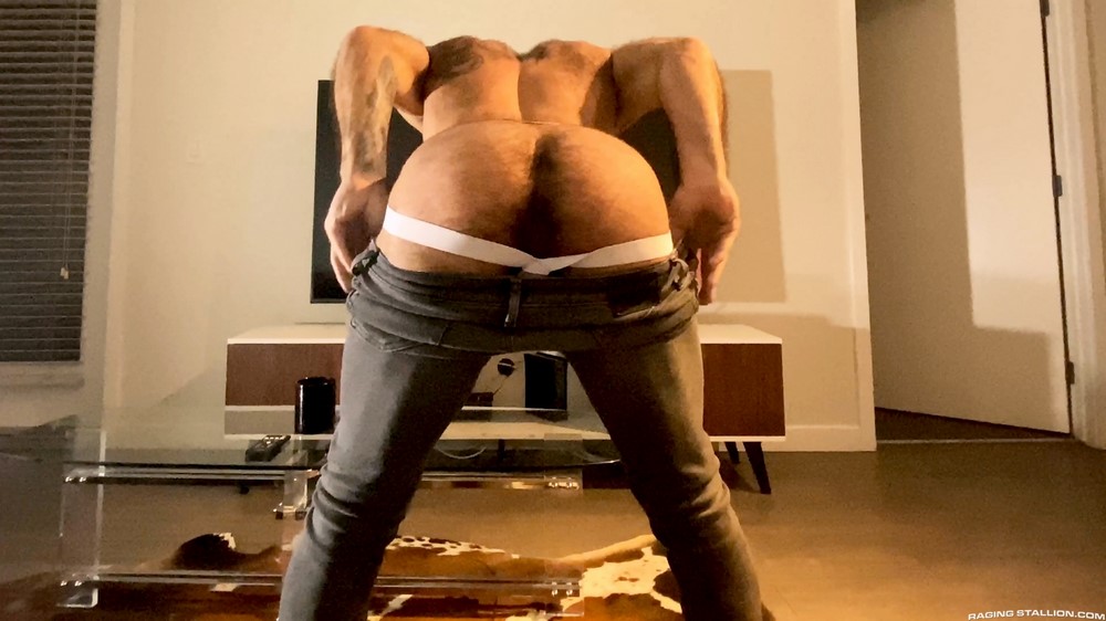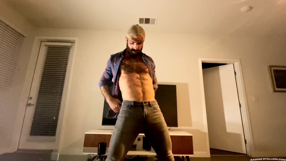 Vince Parker is stuck at home, so he invites “Private Dancer” Jake Nicola, over for a striptease. Jake wastes no time seductively moving his furry body while stripping down for Vince.