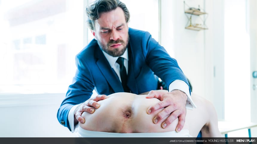 The latest Men At Play release is titled “Young Hustler” and brings James Fox and Edward Terrant together. Hot businessman James works hard, and every so often, likes to play hard too!