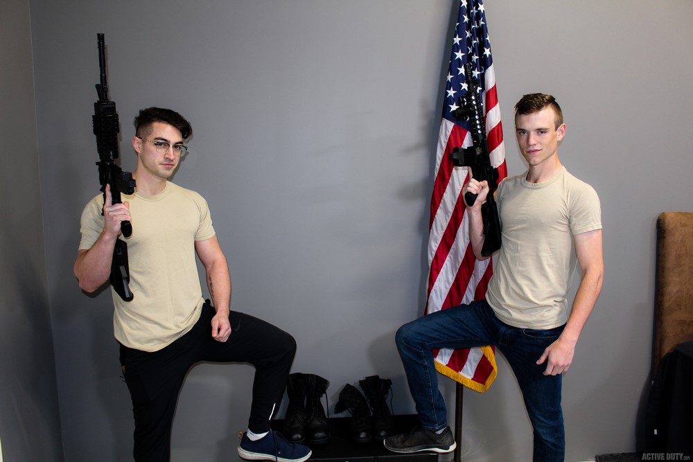 Back in February, Jason Long jerked off during his Next Door Studios audition. He hasn’t returned to Next Door Studios for any hardcore action (yet), but here he is… fucking another guy for the first time at Active Duty! By far the most popular thing for a couple soldiers to do in their downtime is help each other out with all that overflowing testosterone.