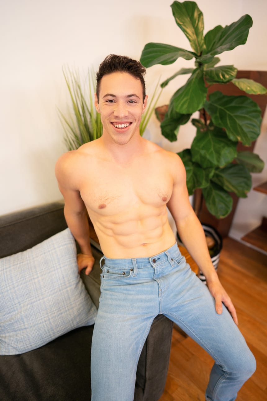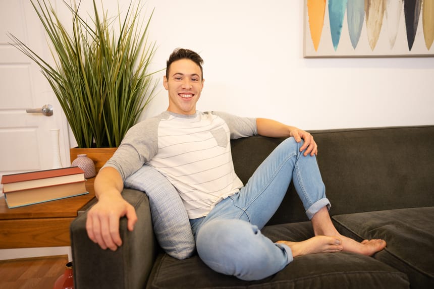 Jax and Kyle don’t spare a moment for conversation – these two hunks are so horny they get right to undressing each other! Jax is fascinated with Kyle’s big, bouncy booty, putting him on all fours on the couch and slapping and jiggling his cheeks, then rimming him.
