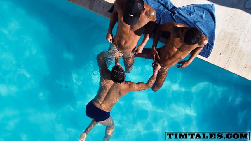 That insanely gorgeous Latino power bottom is fulfilling his biggest fantasy: getting spit-roasted by two massive cocks, in a sunny pool. Ain’t that the highest level of sensuality?