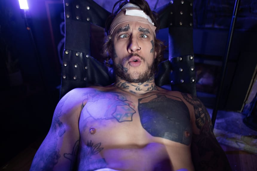 Bo Sinn‘s big, bandaged dick is hard and wants attention, especially after he checks out Marco Bianchi‘s muscle ass. Marco leads Bo to the special physio chair and removes the bandage from his cock.