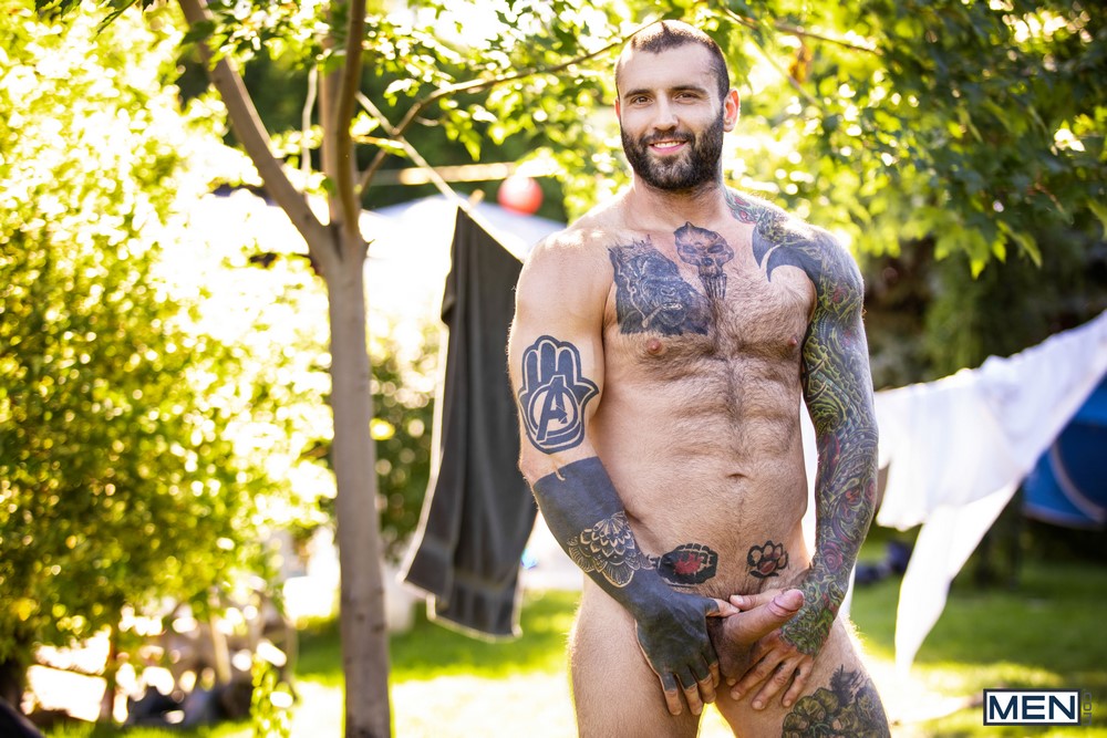 The Men.com network has just released “Clean Sheets, Dirty Secrets“. In this bareback scene, Markus Kage cheats on his wife and fucks gardener Benjamin Blue.