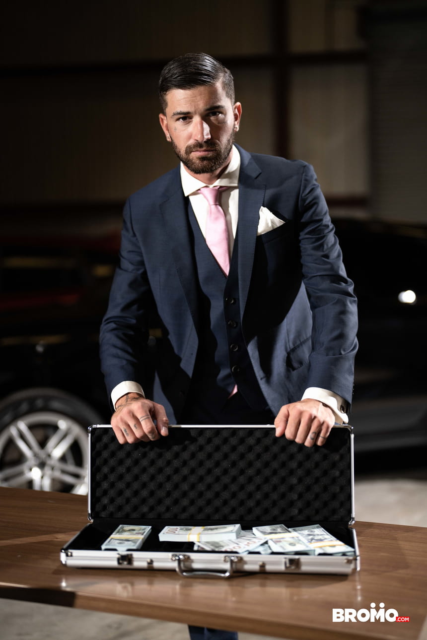 Nate Grimes gets fisted and fucked by Chris Damned in “Bred By The Mobster” from Bromo! Nate has good reason to be nervous as he waits for mobster Chris as he holds a briefcase full of cash.