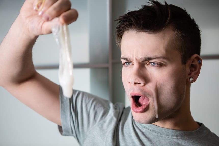 Alone again, Ryan discovers one of Malik’s discarded condoms full of spunk and he can’t resist sampling the flavor! The twink pours Malik’s delicious juices all over his face and body and uses it as lubricant while stroking his dick.