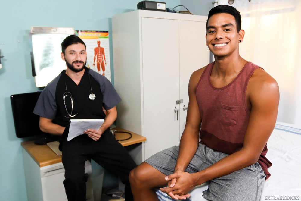 Jay Seabrook can’t seem to orgasm when he is with other guys. Not a problem for doctor big dick Scott Demarco. The hung doctor probes Jay’s ass and feeds him his hard cock. He then fucks his patient in various positions and eventually helps Jay to cum multiple times. Who else wants to make an appointment?