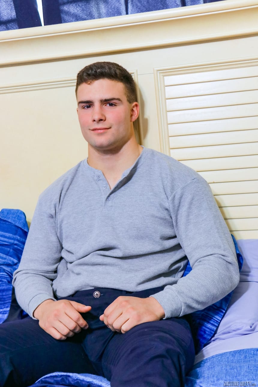 Active Duty: Handsome newcomer Thomas Woods strokes his big juicy cock
