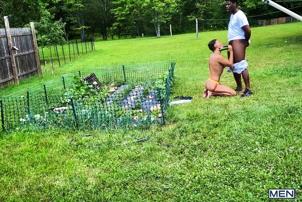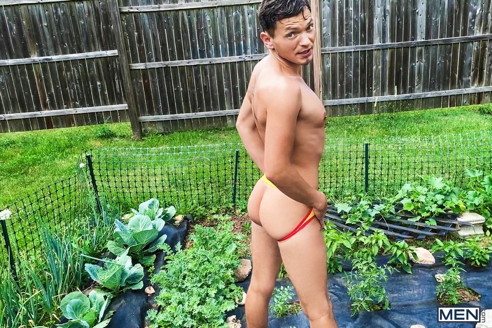 Ty Shine fucks Bruno Cartella in this Men.com scene, called “Cockumber“. Ty sees his hot neighbor Bruno bent over in his veggie patch and sneaks closer for a better look at that booty.