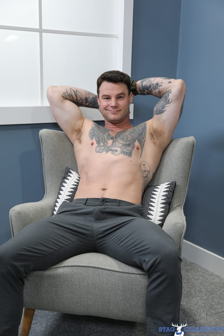 Stag Collective has just released a hot solo video starring inked newcomer Tyler James. This is Tyler’s first time and he is excited and nervous about his first shoot.