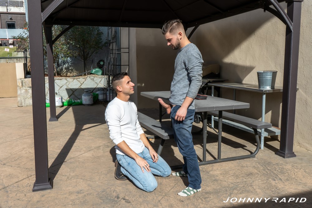 Bottom boy Vinny Blackwood gets fucked by Johnny Rapid in “Get Paid While You Get Laid“. Sometimes it’s hard for Johnny Rapid to juggle his HVAC business and his career in porn, so today he’s found a way to do both, as Vinny helps him carry in some equipment before they film in his client’s yard.